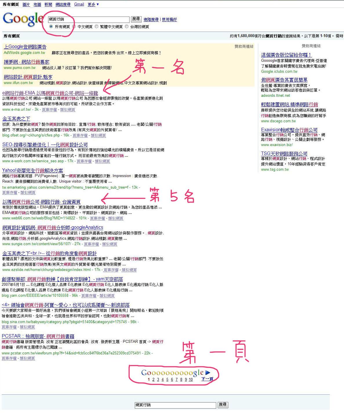 以自然的搜尋方式,搜尋關鍵字 "網頁行銷"